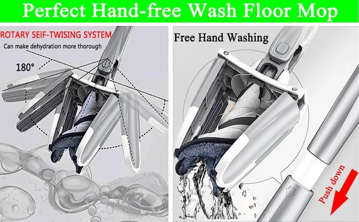 শুধু হ্যান্ডেল ওপরে–নিচে চাপ দিলেই মপ নিজে নিজে ধুয়ে নেয় এবং পানি বের করে দেয়।
